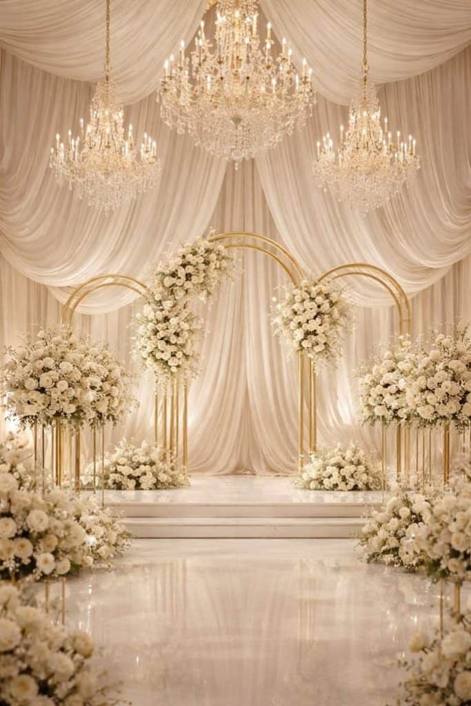 Elegant ballroom setup for weddings, engagements, and special events. تجهيز قاعة فاخرة لحفلات الزفاف والخطوبة والمناسبات الخاصة